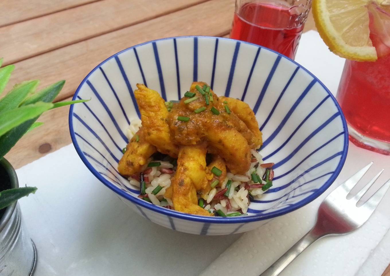 Pollo al curry con arroz salvaje