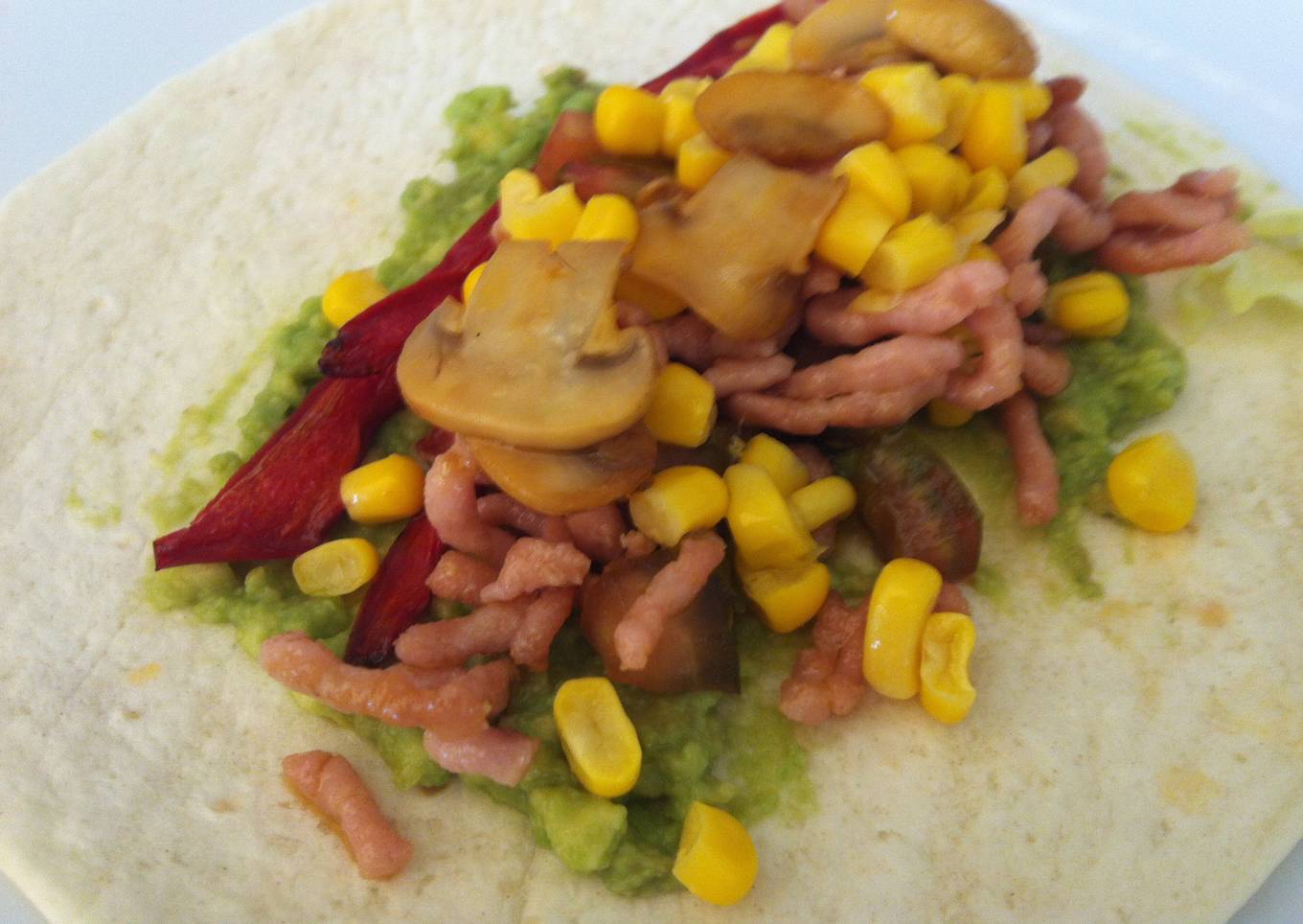 No sabía como llamarle a la receta pero el otro día las hicimos y estuvimos comentando lo de champiñones y bueno pues la comparto la receta que tiene fajitas y guacamole pero no son ingredientes mexicanos.