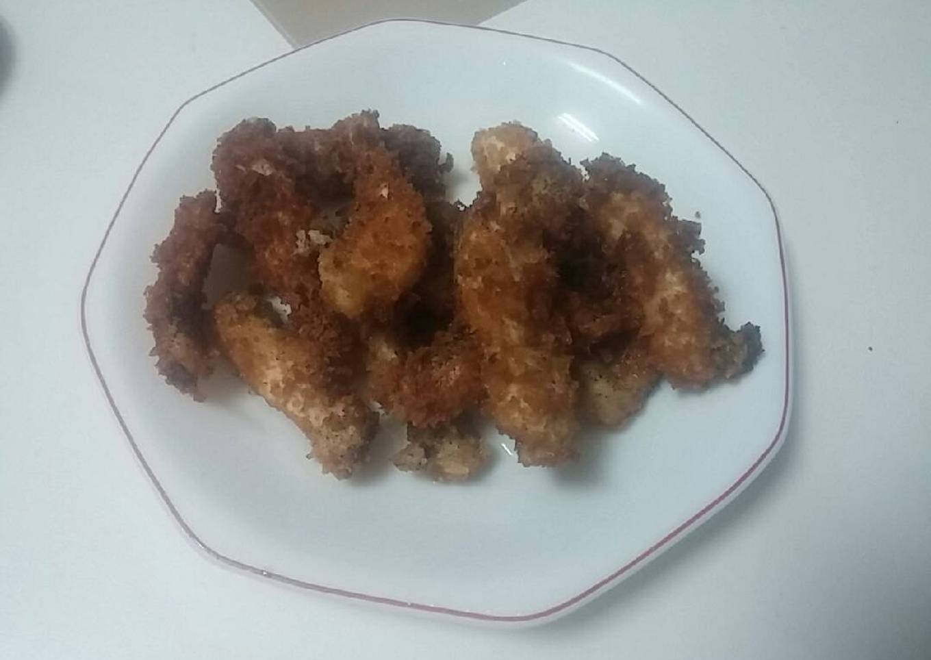 - A la hora de hacerlo sacar las tiritas mojar en huevo y en.los kikos que habremos picado con la picadora o en un mortero.