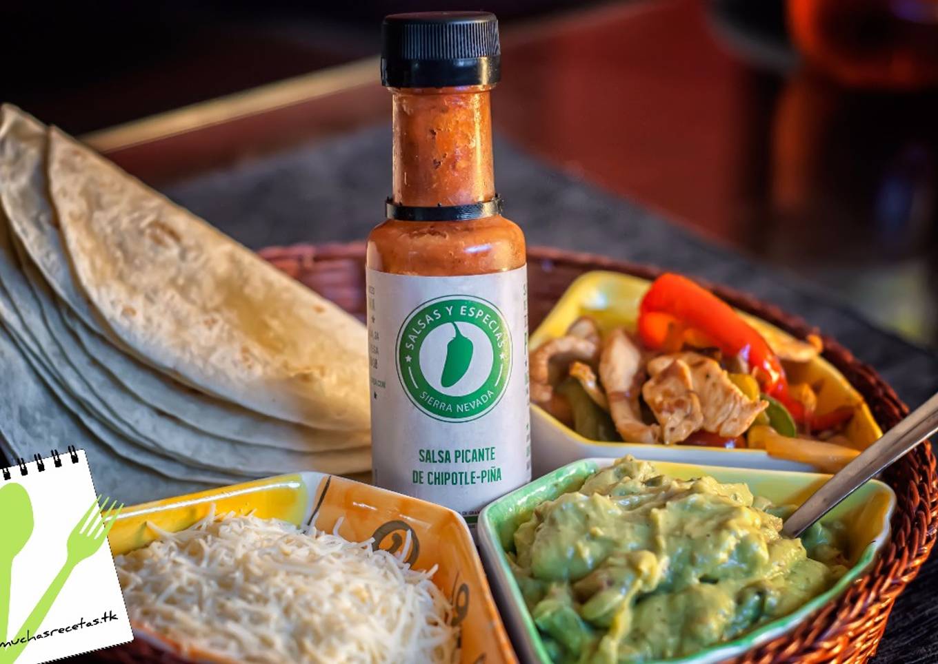 Servir el sofrito en un bol, con guacamole en otro, queso rallado en otro, la salsa de Chipotle-Piña y las fajitas, para que cada uno se las haga como más les guste. - No dudéis en visitar la web salsasierranevada.com, encontraréis muchas salsas y especias, que os soprenderan.