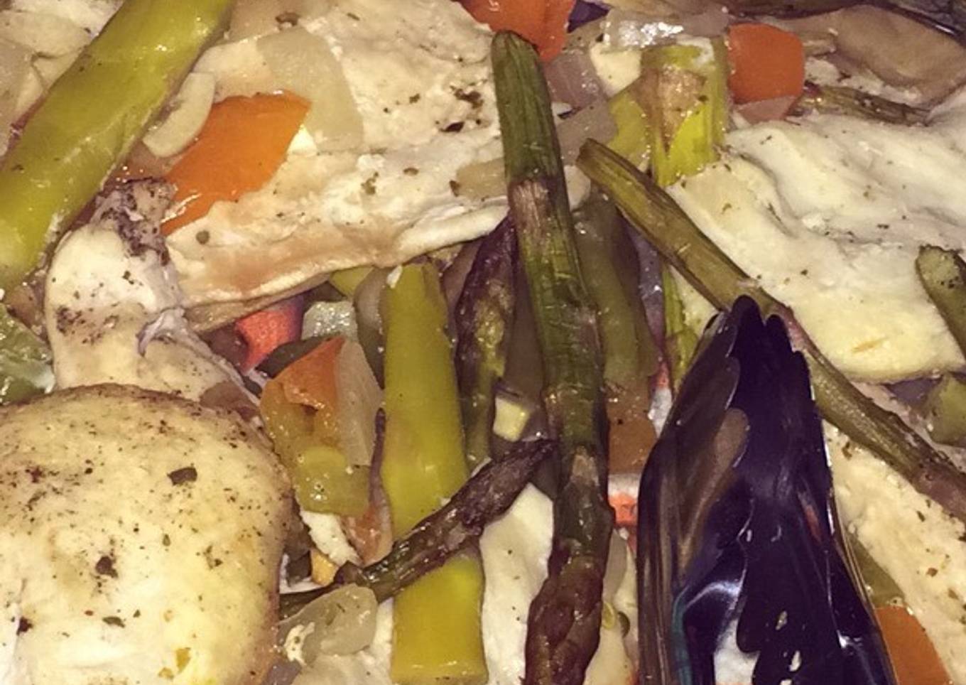 - Abrimos el horno y damos la vuelta a las pechugas y removemos las verduras. Dejamos unos 10 minutos más. Comprobamos y listo!