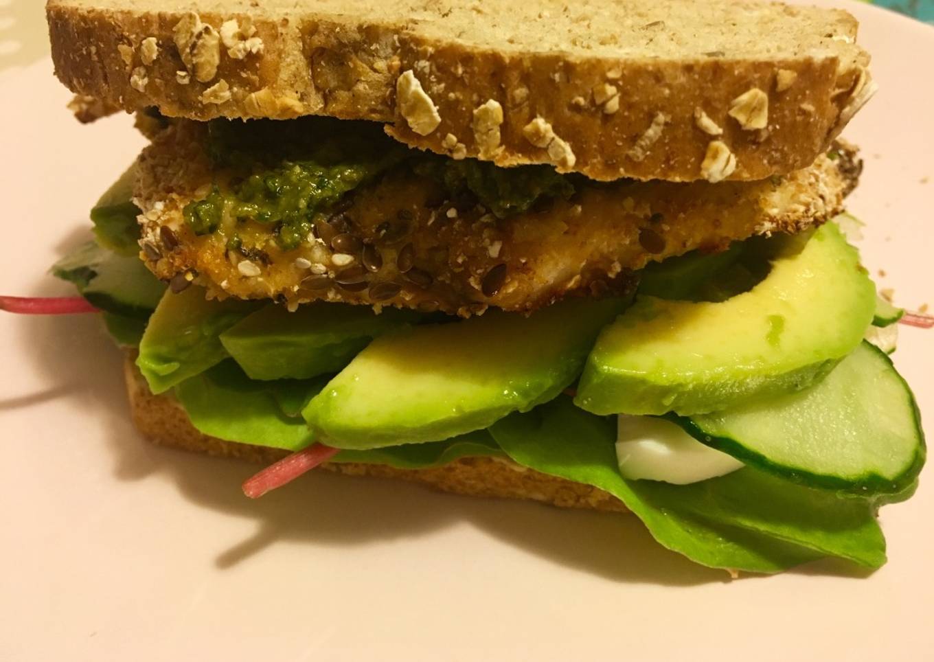 Hoy como motivo del #Díadelsandwich este súper rico con pollo al horno y pesto casero que ha salido de muerte!! Para el pesto aquí tenéis la receta que yo hago: https://cookpad.com/es/recetas/722995-salmon-gratinado-con-pesto