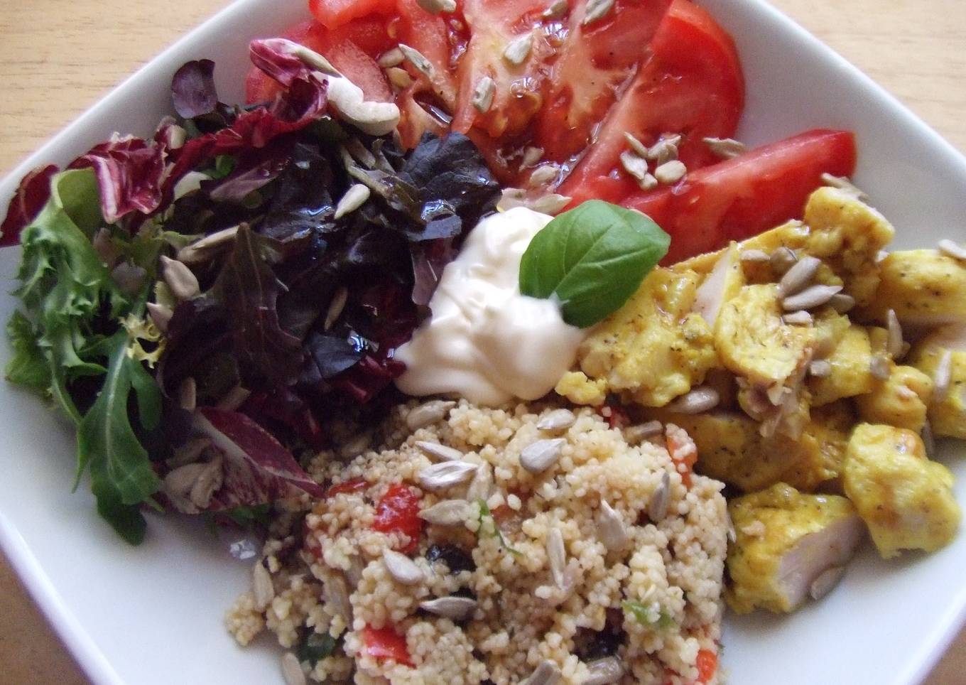 Un plato de cus-cus fresquito y en ensalada es un plato bien recibido en verano. Y, si está acompañado por pollo, constituye una cena estupenda.