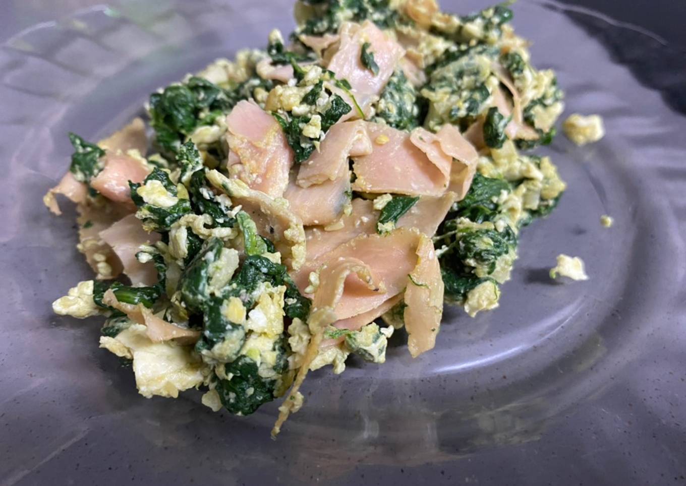 Steps to make to make Espinacas con pechuga de pavo y huevo