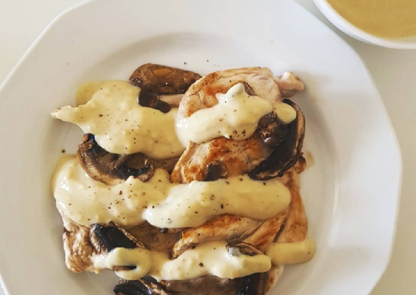 Pechuga de pavo a la plancha con champiñones y bechamel de garbanzo 🍂😍