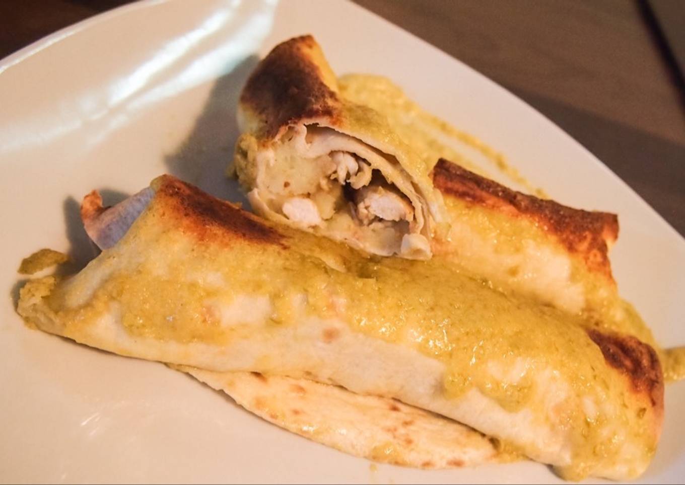 - Con todo listo vamos a ir enrollando las enchiladas, sobre cada tortilla iremos poniendo puré de patata y las tiras de pollo, enrollarlas (mejor ver video) y disponerlas en una bandeja de horno. Cubrir con la salsa espesa verde y gratinarlas en el horno hasta que doren.