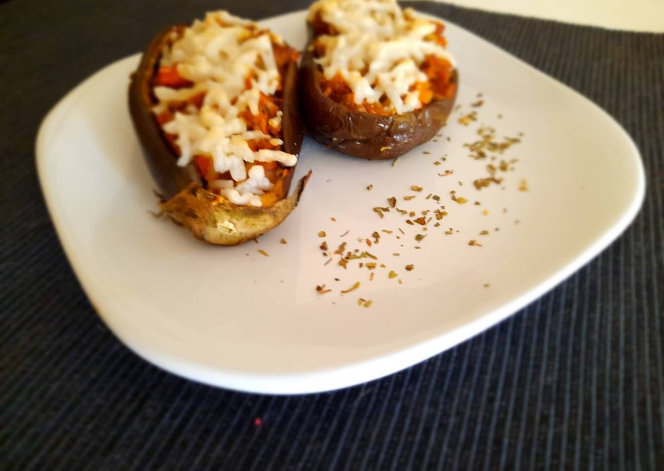 - Rellenamos las berenjenas, añadimos el queso por encima y gratinamos. Ya están listas. A disfrutar 😋😋😋