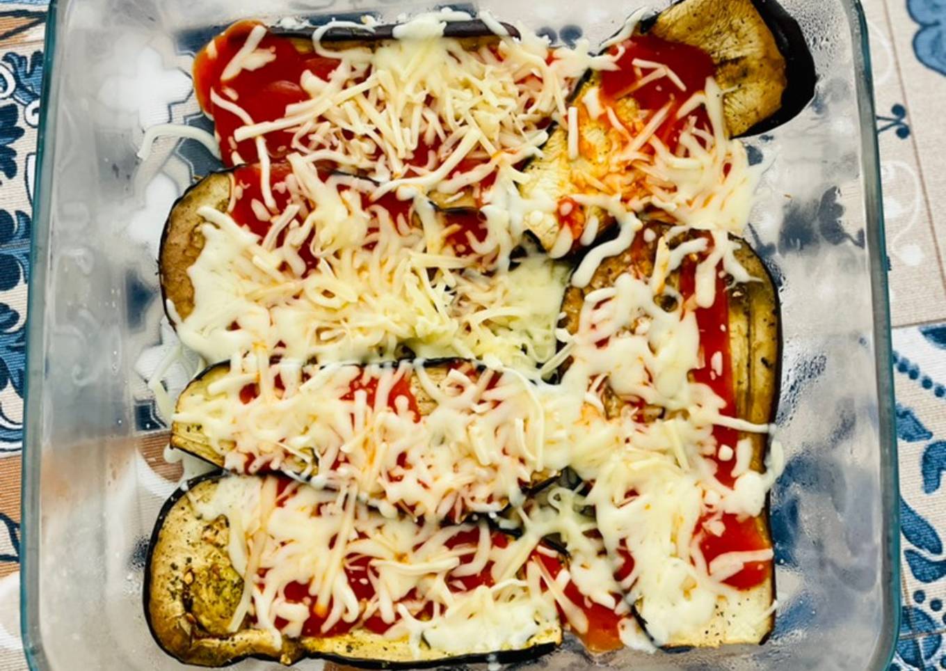 Colch贸n de berenjenas con salsa de tomate y quesito en la airfryer 馃崋馃