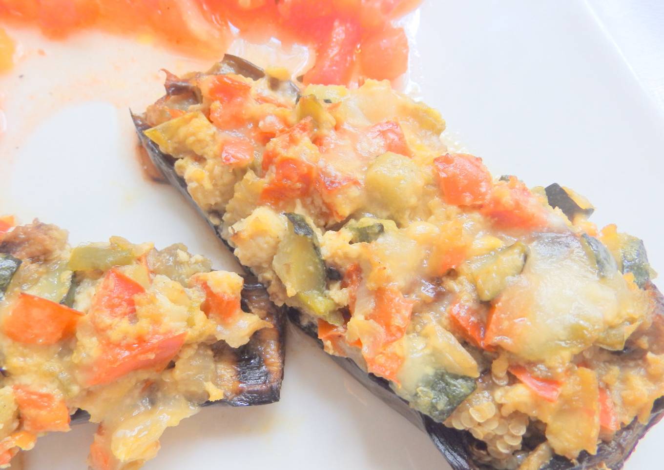 Berenjenas rellena de revuelto de hortalizas y parmesano