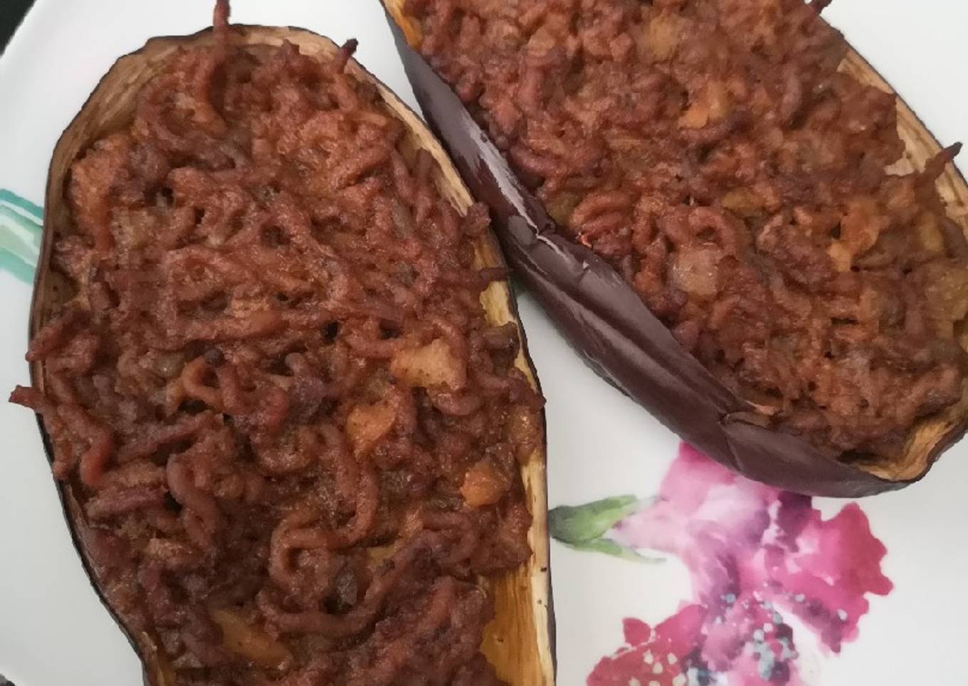 - Entonces, sacaremos las berenjenas del horno y rellenaremos las mitades. Volveremos a meter en el horno, hasta que la carne se haya tostado. Y serviremos.