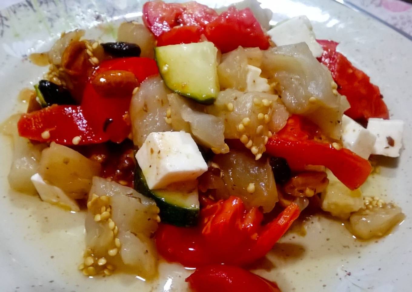 Hello everybody, it is me, Dave, welcome to my recipe site. Today, I will show you a way to prepare a distinctive dish, Ensalada tibia de berenjena y tomate. One of my favorites food recipes. This time, I am going to make it a little bit unique. This is gonna smell and look delicious.