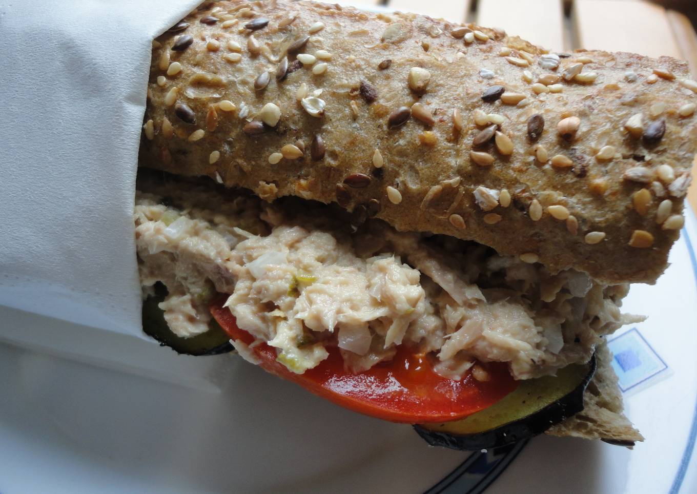 Bocadillo con atún y berenjenas