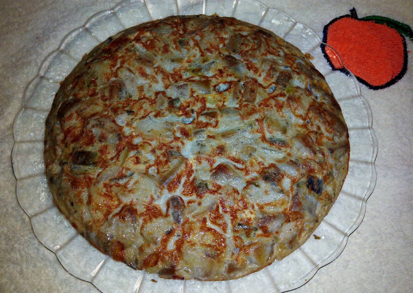 Tortilla de berenjena, cebolla y pimiento verde