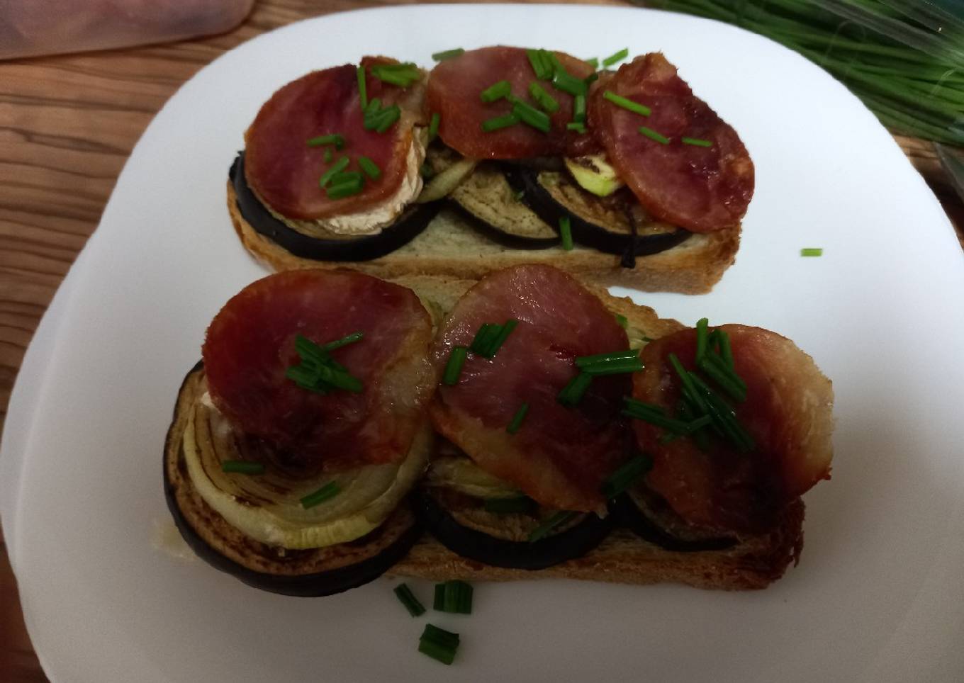 Instructions to make to make Tostas de verduras asadas con lomo embuchado