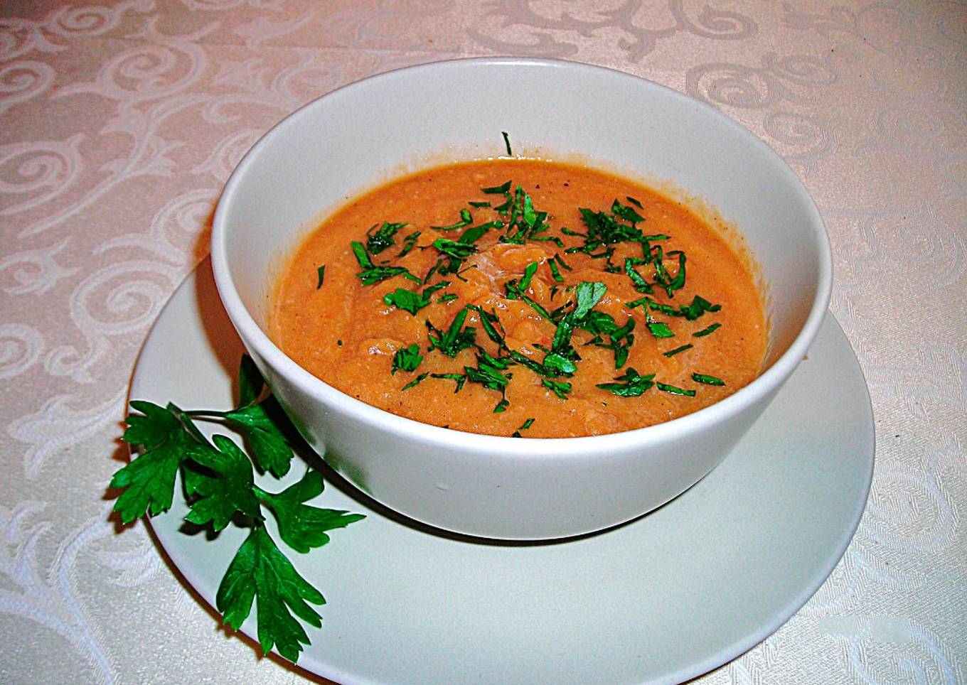 - Reparte la crema templada en cuatro boles y espolvorea perejil picado por encima.